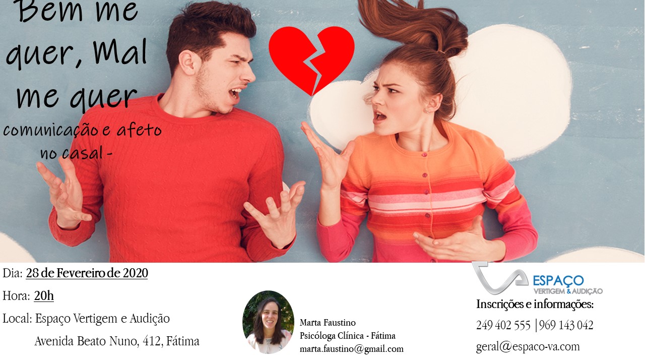 Vai realizar-se um workshop para casais, em Fátima, no dia 28 de Fevereiro, às 20h, no Espaço Vertigem e Audição.